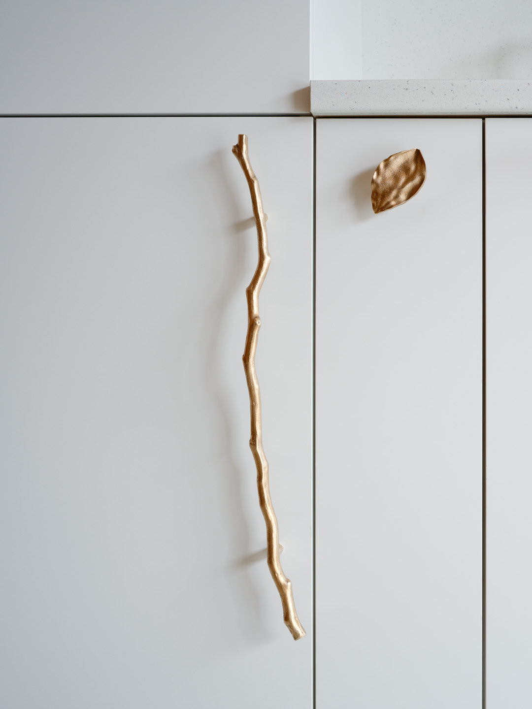 List malý, elegantní Art háček, madlo, věšák, úchytka je ručně formovaný hliníkový, nebo mosazný odlitek. Díky svému vzhledu a tvaru listu bude originálním a nevšedním doplňkem vašeho domova. Lze použít na jakémkoliv druhu nábytku, ať už v kuchyni, koupelně či obývacím pokoji. Dokonale ladí se dřevem i jinými materiály. Sedm moderních barevných odstínů.