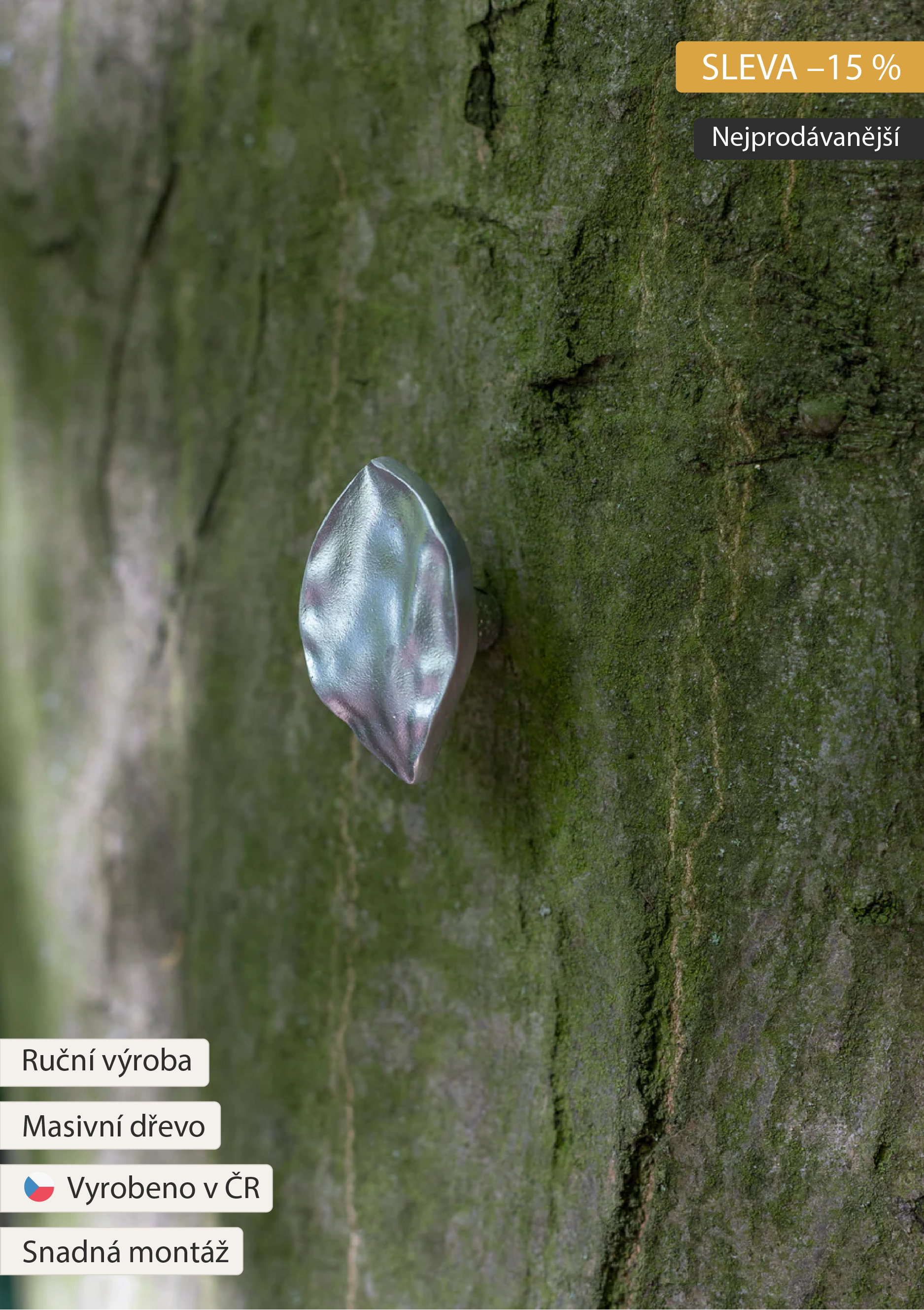 List malý, elegantní Art háček, madlo, věšák, úchytka je ručně formovaný hliníkový, nebo mosazný odlitek. Díky svému vzhledu a tvaru listu bude originálním a nevšedním doplňkem vašeho domova. Lze použít na jakémkoliv druhu nábytku, ať už v kuchyni, koupelně či obývacím pokoji. Dokonale ladí se dřevem i jinými materiály. Sedm moderních barevných odstínů.